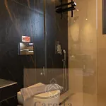 Banyo odası konukların kullanımına sunulan banyo küveti, duş ile donatılmıştır.